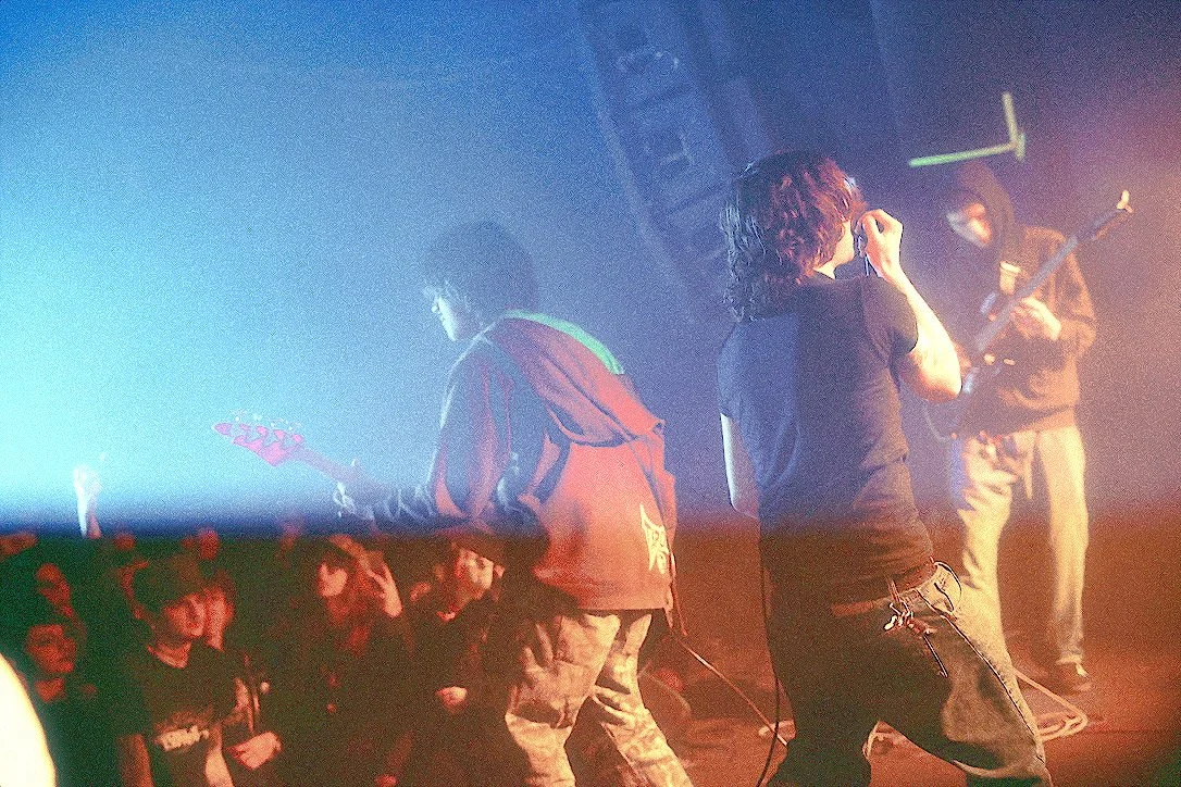 Elijah: Yeah, I was in a hardcore band called Makaria. We were in the scene for like late-2021 to around mid-2022, I want to say: and actually, I knew of David, I just hadn’t really talked to him. We were in jazz band together for a few years and then, yeah– we just never had the nerve to talk to each other until we met Brenden. I actually met him in my stats class of all places.